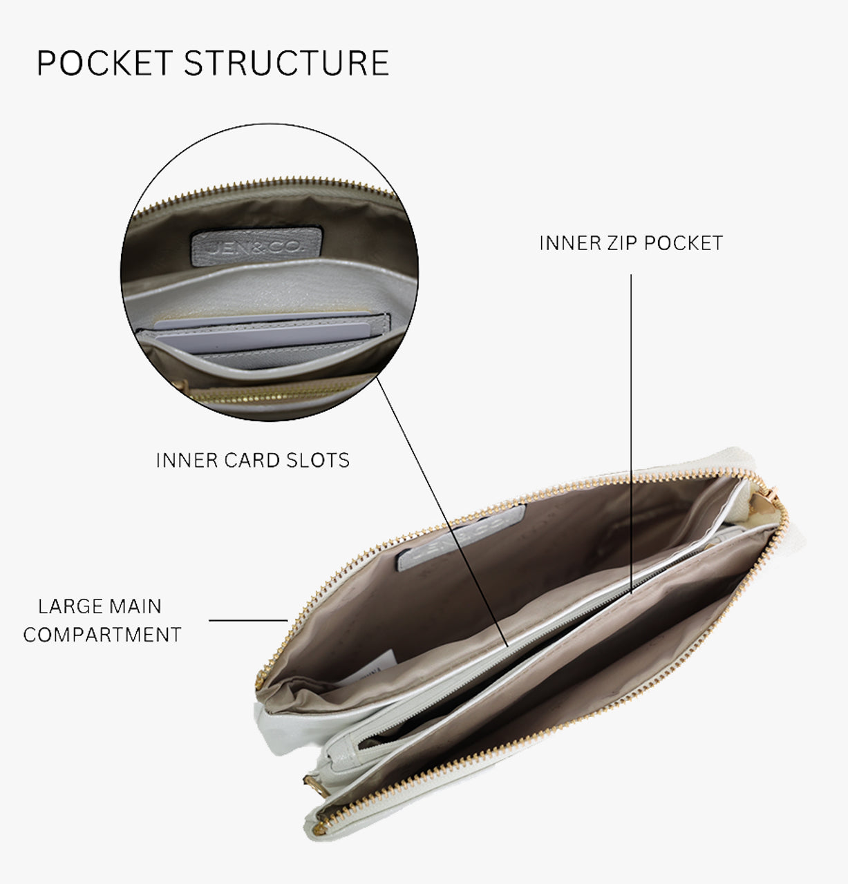 • Straps: Detachable wristlet strap, Adjustable/detachable shoulder strap